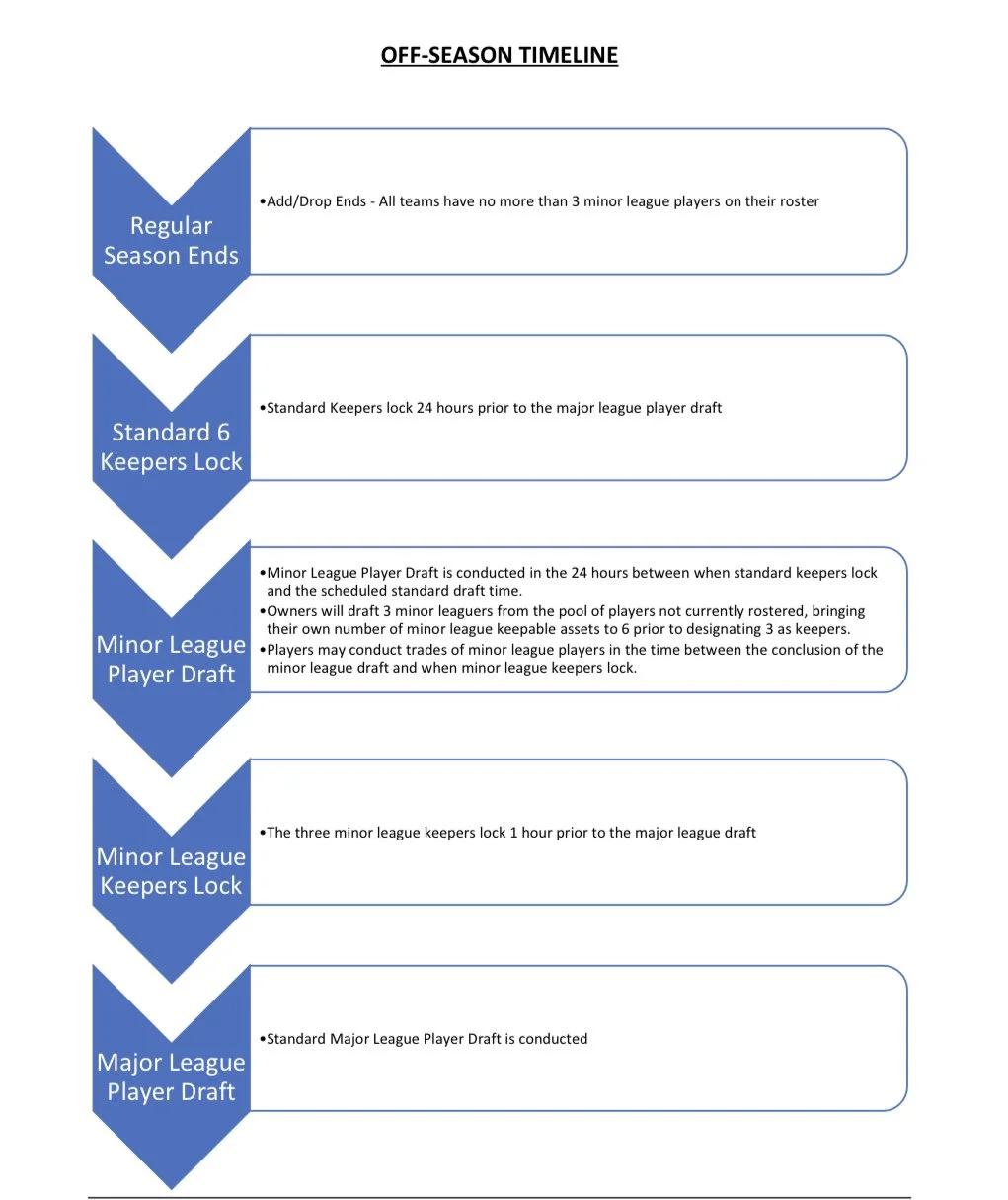 The first move for the commissioners will be to set a date for the existing rosters to reduce their rostered minor league eligible keepers to three. That date has yet to be set by the league commissioners. After that, the league will partake in its first ever Minor League Player Draft on March 22, 2023, the day before the Major League Player Draft.