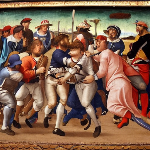 Here’s a renaissance fresco of a superior baseball team beating down an inferior one that I totally drew myself and didn’t ask an AI to do: